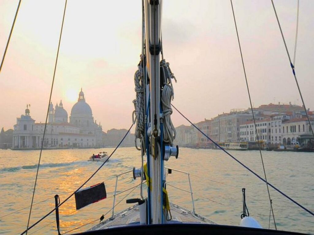 A bordo di Alfred Nobel, una barca a vela di 14 metri, un gruppo ristretto di partecipanti si incontra a Venezia.